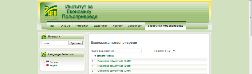 Institut za ekonomiku poljoprirede kontinuirano učestvuje i u realizaciji dugoročnih projekata Ministarstva nauke i zaštite životne sredine i projekata prilagođavanja agrarnog sektora koje Ministarstvo poljoprivrede, šumarstva i vodorivrede Republike Srbije sprovodi u procesu priključenja zemlje Svetskoj trgovinskoj organizaciji (STO) i Evropskoj uniji (EU).