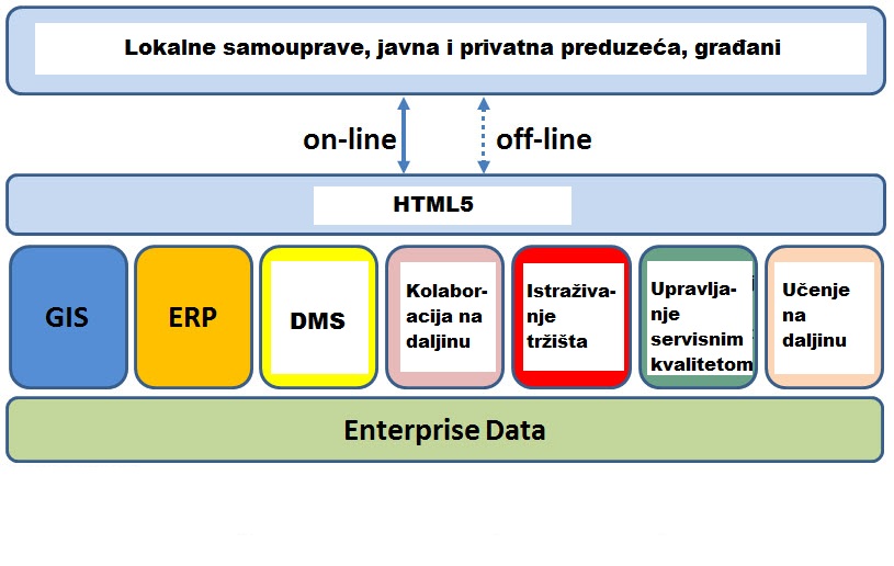 Sistem se odlikuje centralizovanim skladištem podataka kao zajedničkim resursom koji omogućuje efikasnije i kvalitetnije poslovanje lokalnih samouprava, javnih preduzeća i privatnih preduzeća. Kao korisnici oni su u mogućnosti da pružaju mnogo kvalitetnije i brže usluge građanima i privredi uz mnogo manje troškove održavanja bez obzira da li informatičku infrastrukturu žele da imaju na svojoj lokaciji ili da je koriste iz oblaka (cloud servisa).